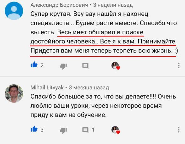 Я учу только тому, в чем действительно хорошо разбираюсь, и что многократно проверено мной и моими клиентами на практике.