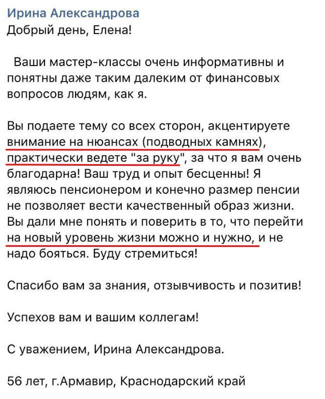 Все технологии инвестирования, которые я даю моим клиентам и ученикам, я использую сама и используют мои VIP-клиенты.